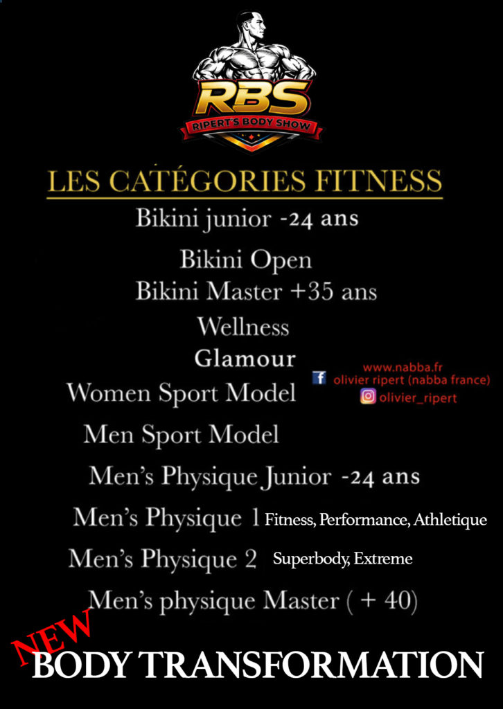 Pour la 1ere fois en France nous mettrons en place une catégorie que nous avons découverte à l’étranger. Cette catégorie ne récompense pas le physique le plus extraordinaire, ou le plus volumineux ou le plus sec. Mais elle récompense l’engagement, le courage, la volonté de transformer sont corps. Ce corps qui au départ était un handicap, un complexe, un corps qui n’entre pas dans les codes de notre société, car trop gros ou trop maigre. La récompense première n’est pas la victoire, mais la transformation acquise, le chemin parcouru. Cette transformation qui va changer la vie et permettre de se retrouver sur la scène du Ripert’s Body Show. Cette catégorie se nomme  » Body Transformer »