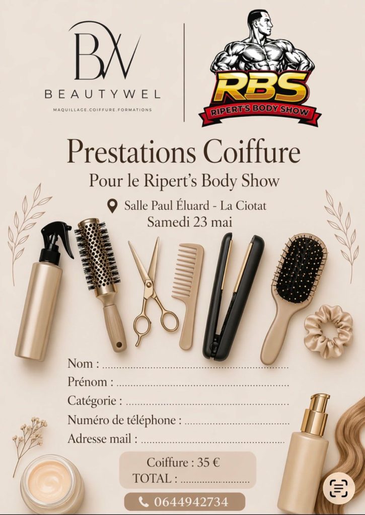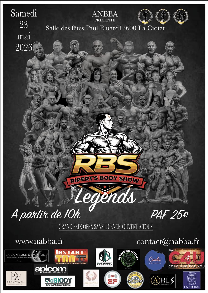 Pour tous les participants au Ripert’s Body Show 2026. Ceux qui seront sur place le vendredi , catégories body et Fitness, vous pouvez venir récupérer votre dossard sur les lieux de la compétition et de la pesée.